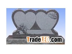 double heart grey granite headstone